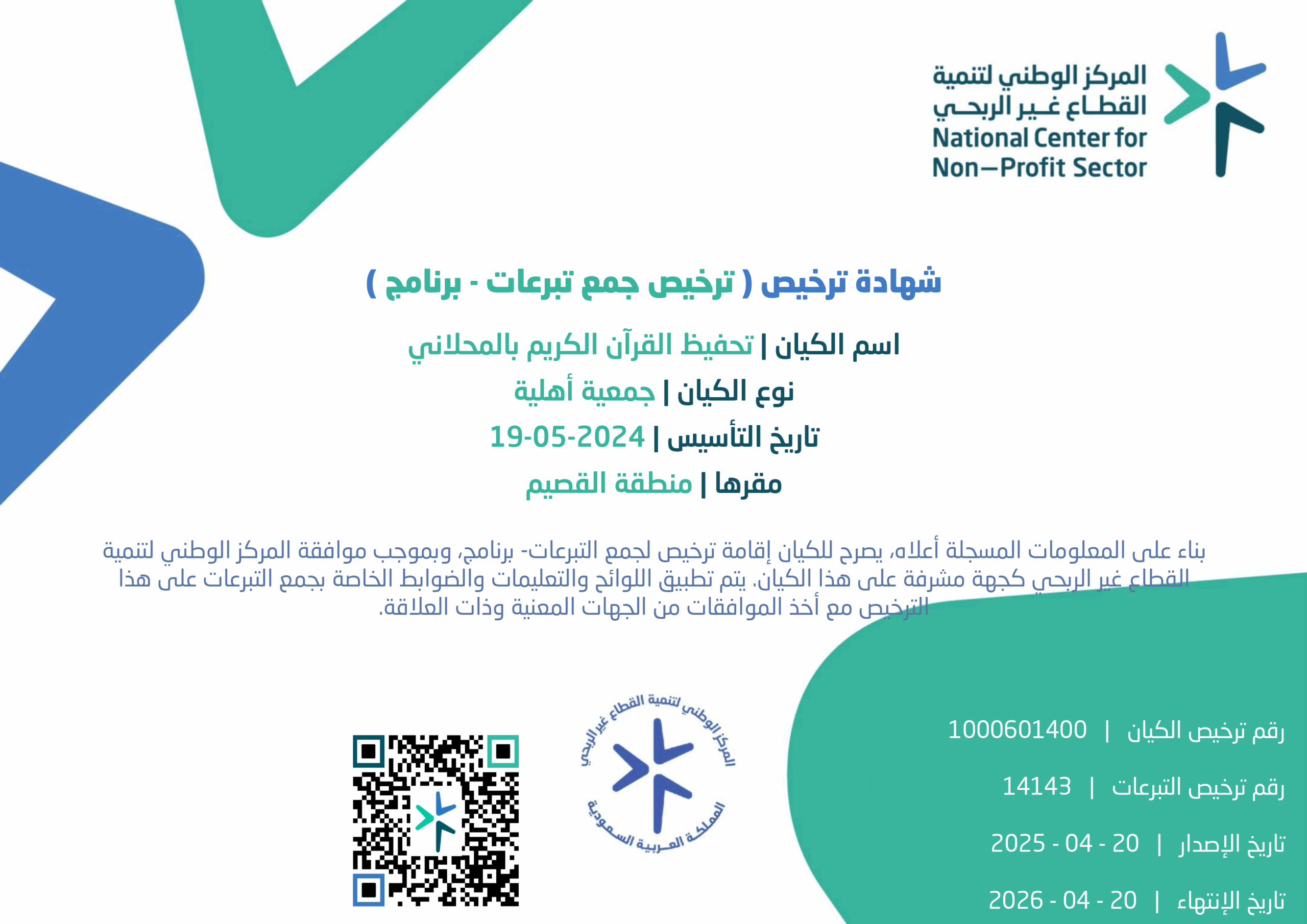 هي جمعية غير ربحية تُعنى بتعليم كتاب الله تعالى حفظًا وتلاوةً وتجويدًا وتفسيرًا، وتسعى لغرس القيم القرآنية في نفوس أفراد المجتمع من خلال برامج تعليمية متخصصة وكوادر تربوية مؤهلة.
